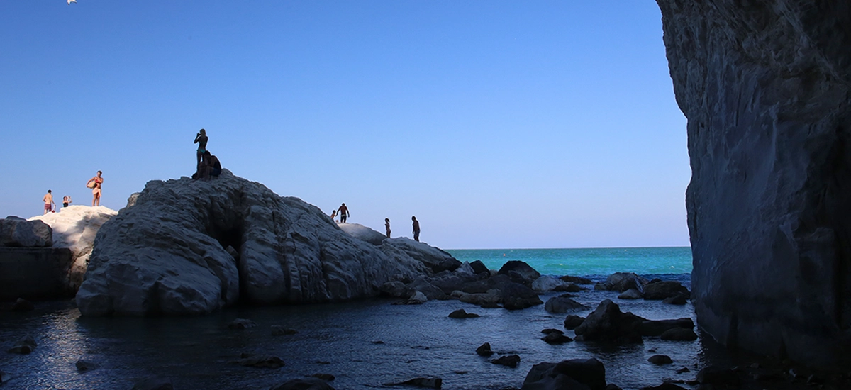 Verdi sinuose colline, casolari abbandonati, solitarie abbazie, abbacinanti nevai, acque limpide e dovunque silenzi. E dovunque questo senso che solo qui c’è di un paesaggio che corre, corre dalla montagna alta verso il mare che quando appare è sempre fotografato da lontano come un miraggio.